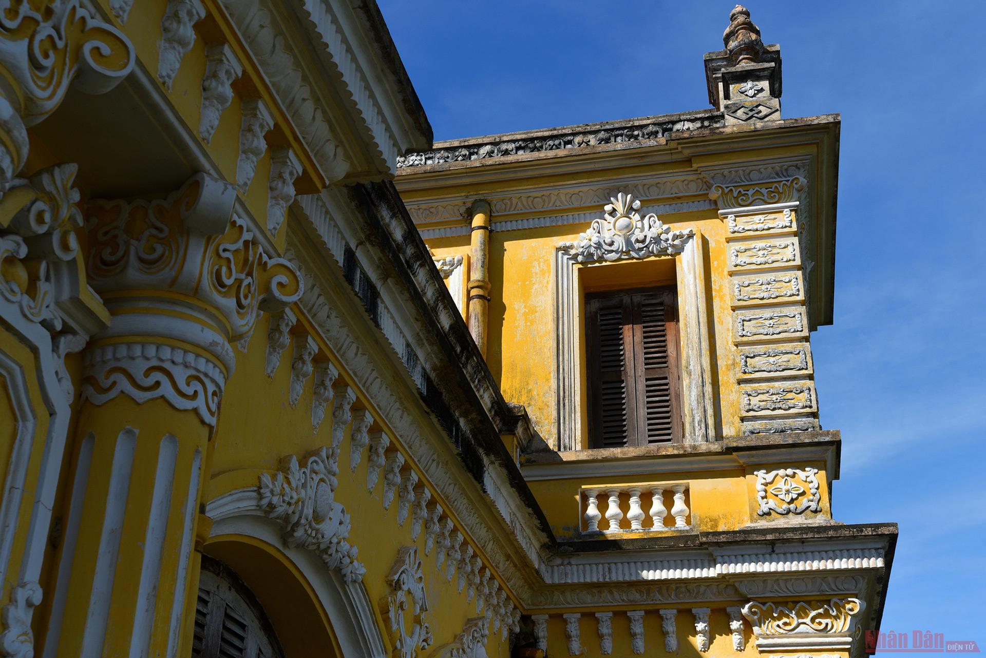 Khai Tuong Building consists of three floors on the foundation of 745 square metres. The façade is decorated with Roman decorative patterns such as medals and angels interlaced with traditional eastern imperial patterns.